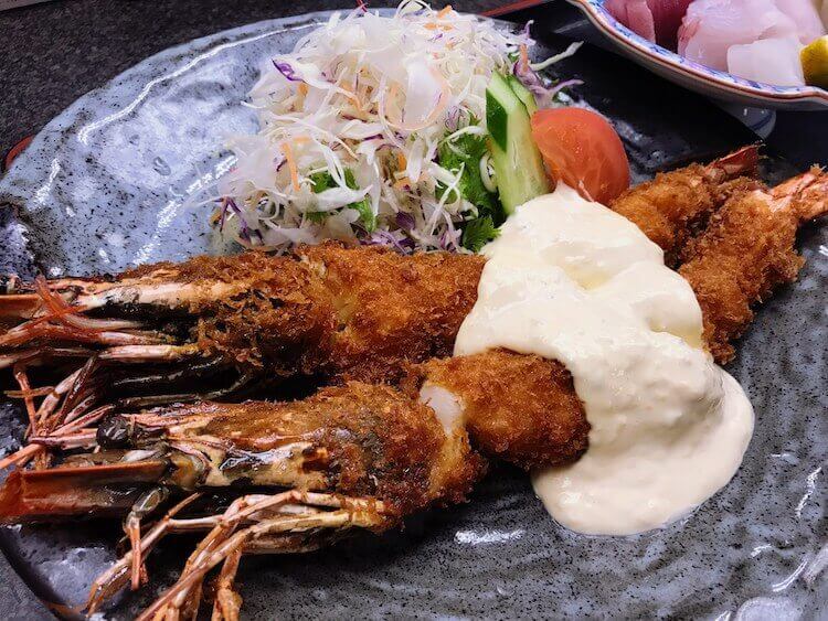 お造り定食とジャンボ有頭エビフライ